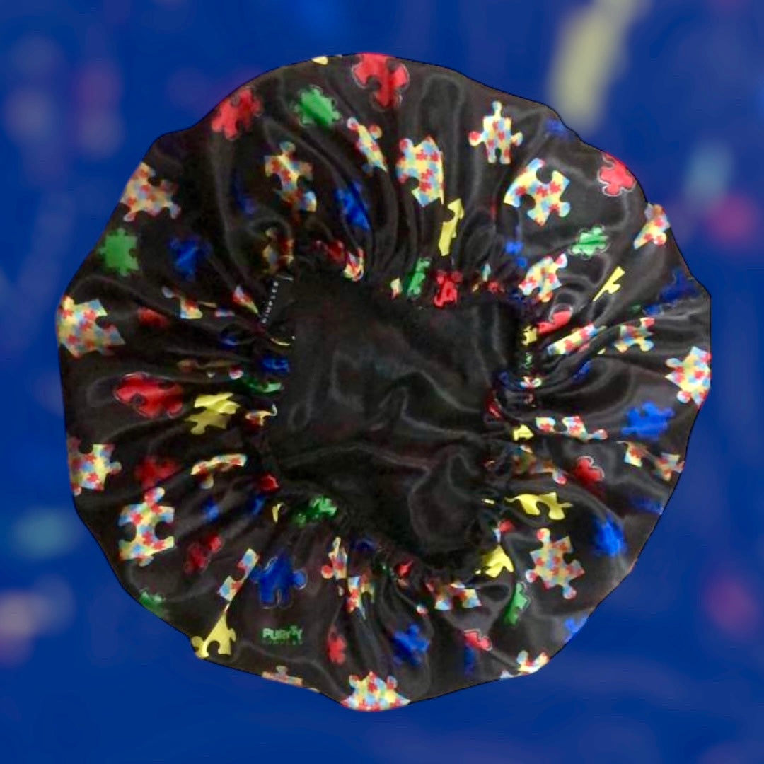 Show your support and embrace hair care with our Autism Awareness Bonnet! Crafted from double-layered satin, this bonnet is designed to protect, nourish, and maintain hair health while ensuring a secure yet gentle fit for all-day or overnight wear.
