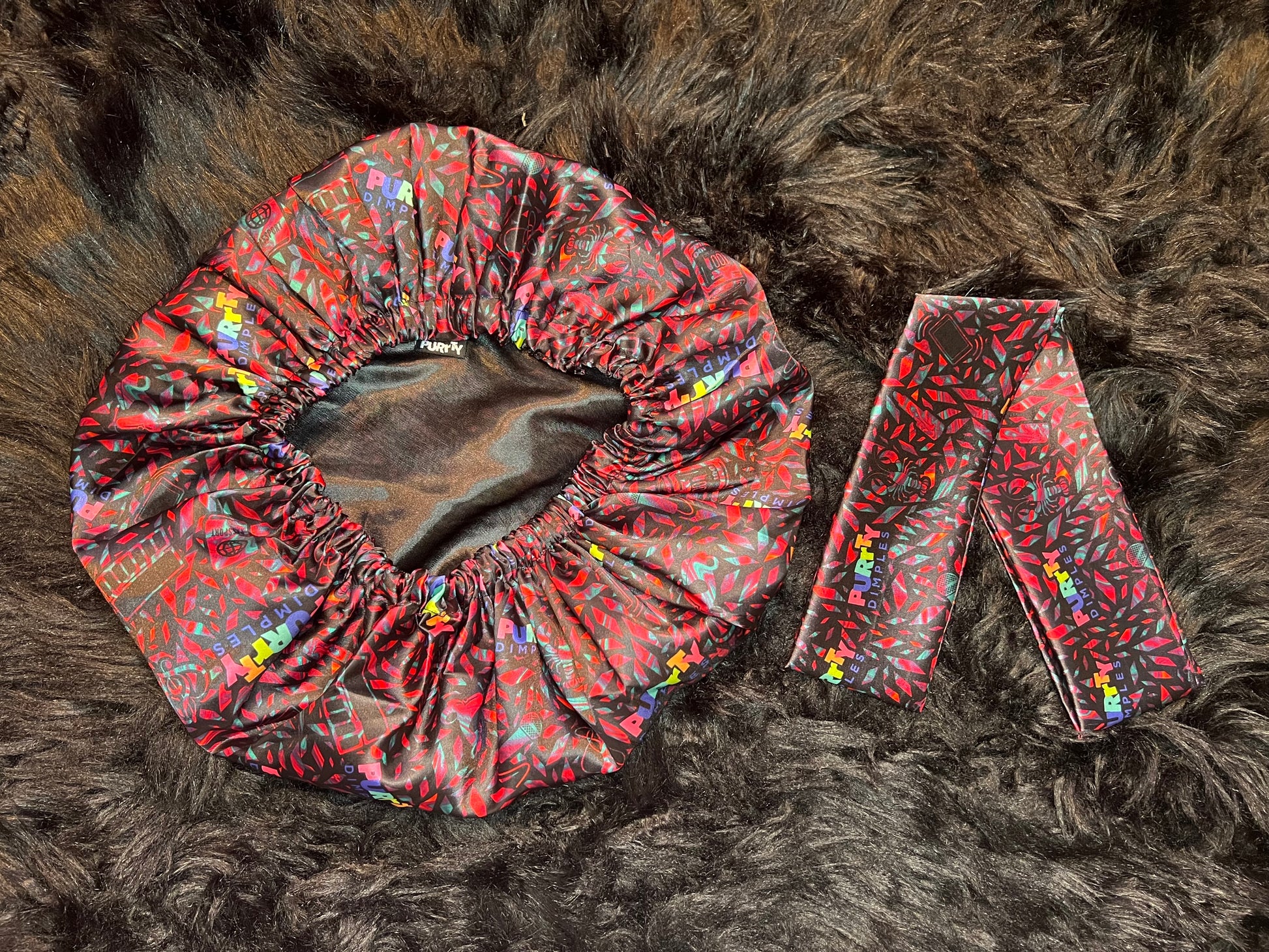 How big do we do it in Purrtyville? #Supa big. Honoring our CEO’s sister we proudly welcome the “Supa Bonnet” to our growing collection. This new bonnet encompasses all of the passions from our dearest friend and sister in our head. Whether it’s traveling, hookah, cooking or makeup, you won’t catch Supa without her comfy, cozy, and ultra protecting bonnet near by, and now… she has one of her own. Grab your fun Supa Bonnet and edge scarf today!